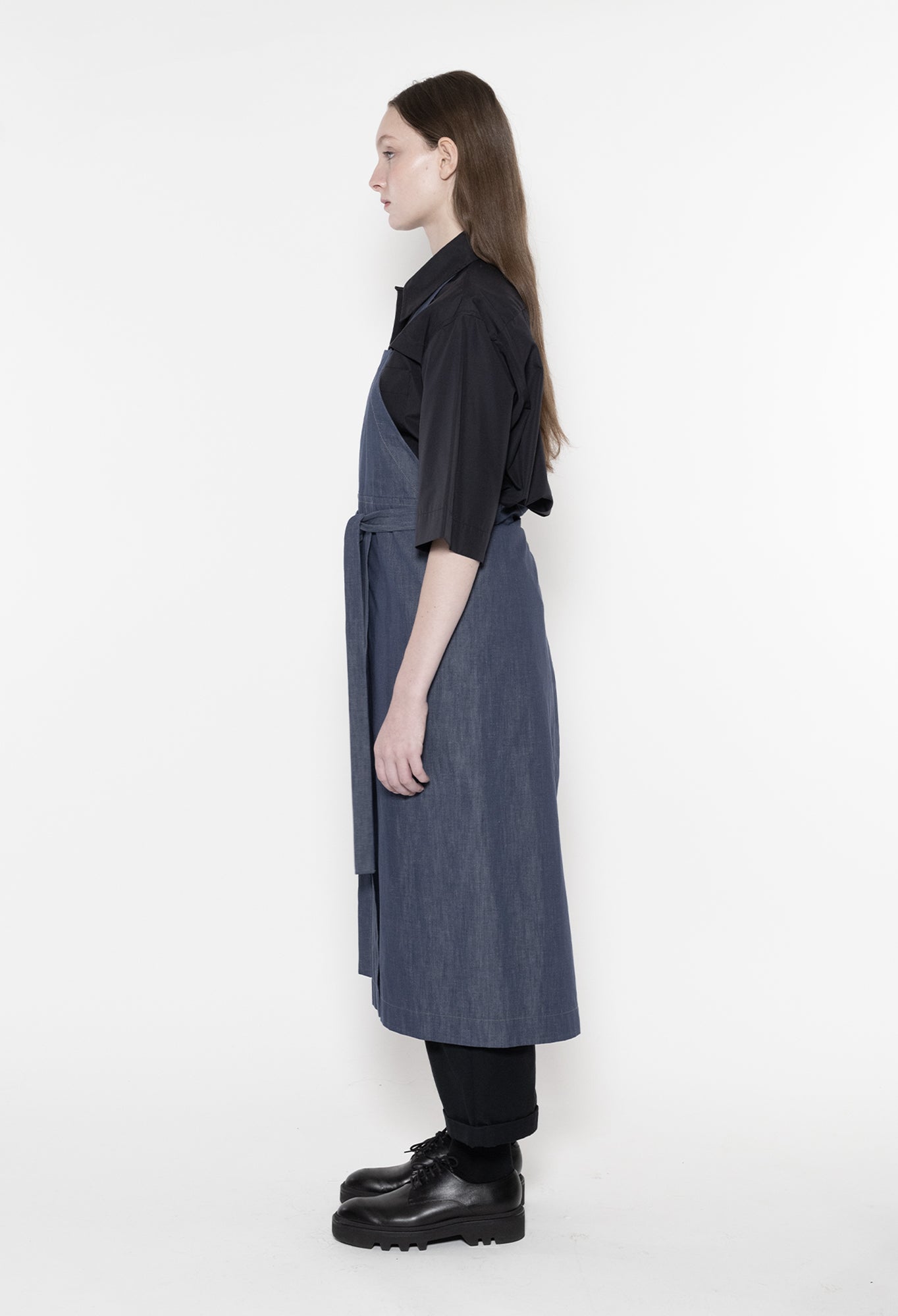 FRANCES - Cotton Linen Blend Apron With Split Leg Detail in Navy