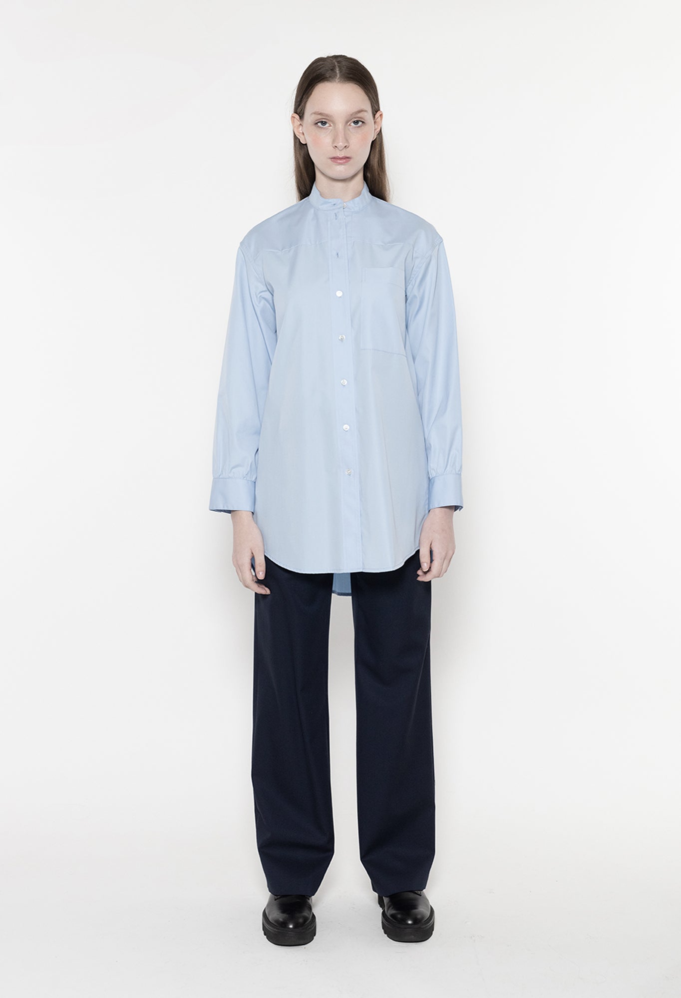 ZORAN - Stand Collar Long Sleeve Cotton Shirt in Sky Blue